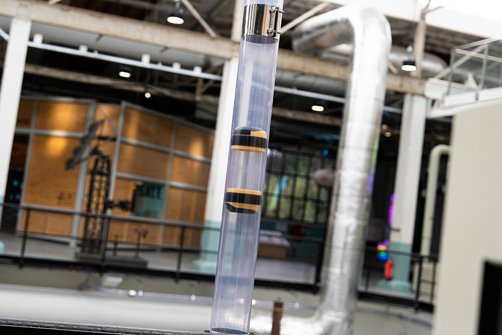 Ook vooral niet overslaan: de telefooncentrale. Nostalgie voor ouderen, verwondering voor jongeren. Er staan telefoons met draaischijven en drukknoppen, een groene PTT-telefooncel en een echte telefooncentrale. Josine: “Je kunt hier naar elkaar bellen. De centrale zorgt ervoor dat je bij de juiste telefoon terechtkomt.” Via het hoekje over radartechnologie komen we uit bij de buizenpost. Ook eentje uit de oude doos. En hij werkt. Josine: “Je kunt briefjes van de ene kant naar de andere kant van het museum sturen.” Even testen: ja hoor, in een seconde of tien is onze post aan de overkant. Josine: “Dit is een populair onderdeel van ons museum.”